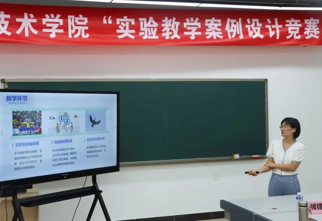 鲁小利老师对《调幅广播原理实验》进行陈述,对项目的内容讲述为:让同学们建立一个属于自己的广播台,对实际应用有更深刻的认识,同学们也可以增加多功能性或更多的趣味性功能,鼓励同学们主动思考,同时针对实际生活中的问题举一反三,通过情景体验使得生活经验对接实践学习知识。