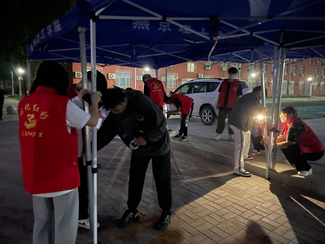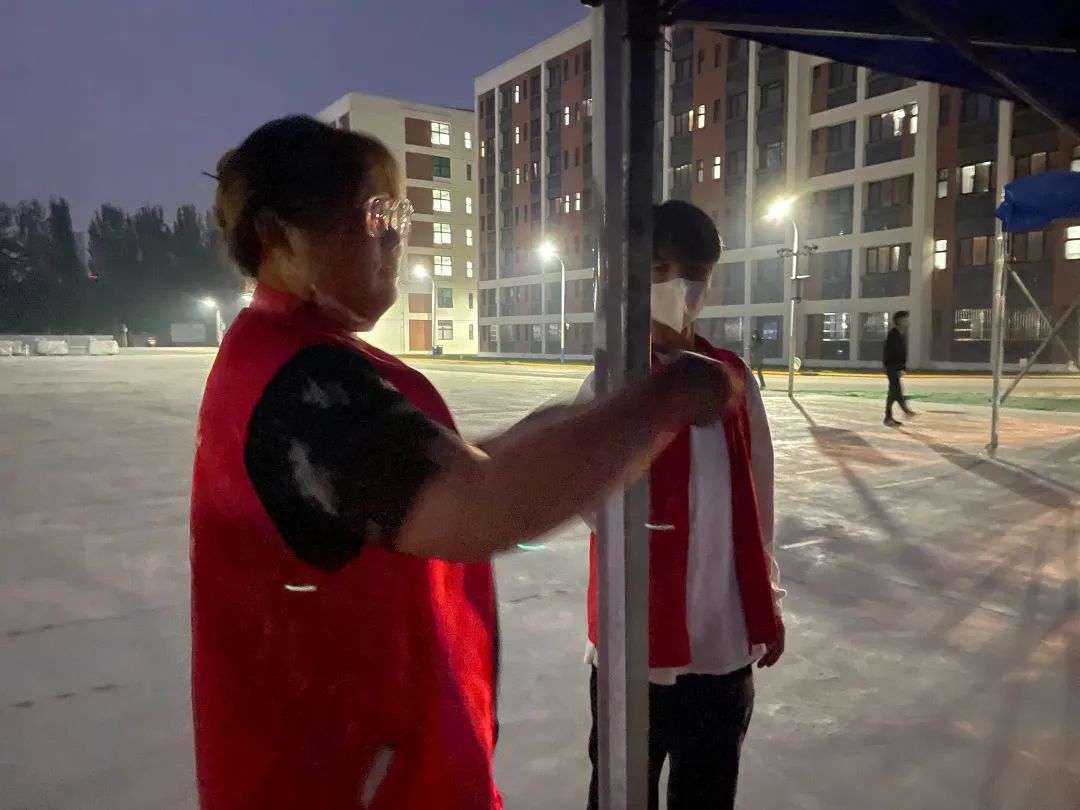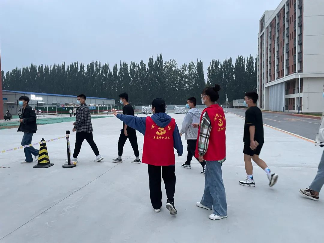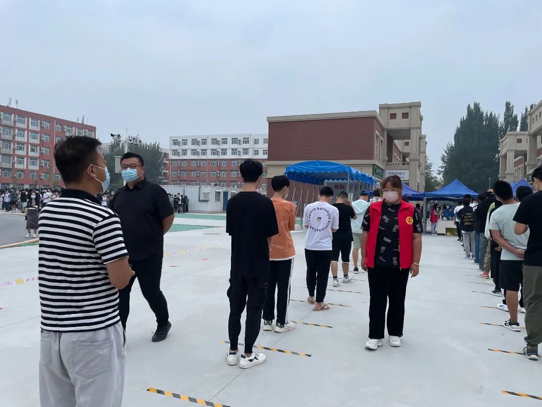 本着“应检尽检、不漏一人”的原则,“小红马甲”们不辞辛苦,天还未亮就已经开始为核酸检测工作做准备。为学生们安排场地,为医生们搭建一个良好的环境,使整个核酸检测过程更加规范。