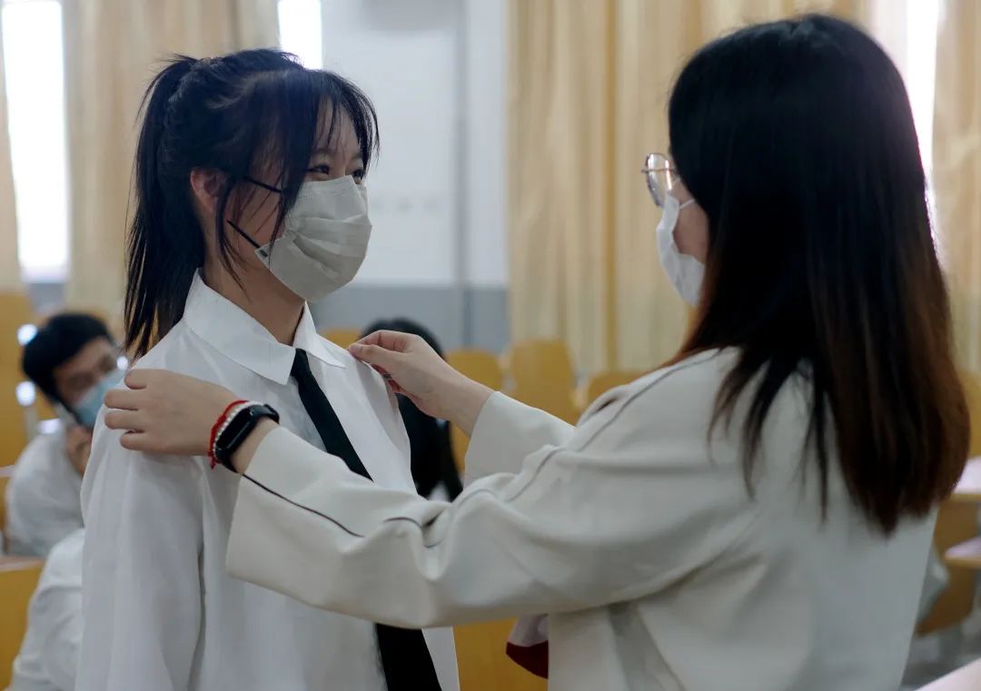 接下来,为全体新生举行新生入学礼。第一项正衣冠,礼记有云:“礼仪之始,在于正衣冠。”校领导为学生代表带校徽,预示着正式成为“燕理人”,牢记校训、校风,秉承燕理精神,脚踏实地,将优秀品格传递,信息科学与技术学院的新生已经准备以良好的精神面貌迎接新的开始。第二项燕理精神文化识读,新生们通过直播识读学校校名、校徽、校训的由来与典故,展现学校特有的精神环境和文化气氛,青年一代浸润在富有文化涵养的校园里得到独有的品格培养。第三项新生入学宣誓,学生们面向校旗,高举右拳,庄严宣誓,决心以全新的面貌开始新的大学生活,续写青春的新篇章。即日起,希望新生们能躬身笃行,以发扬校风为己任;也能褪去青涩,做勇立潮头的实践者。
