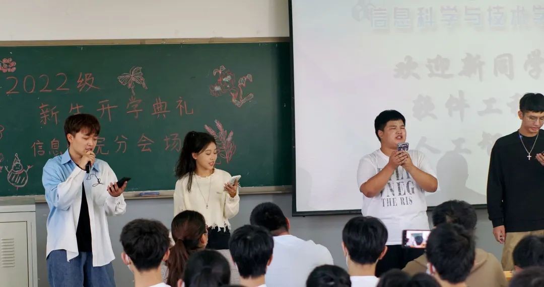 学子们四方而来,欢聚一堂,感受着专属于他们的开学典礼。院长和辅导员们的谆谆教导谨记于心,隆重的入学礼仪式牵动学子的心。新生典礼是对他们的洗礼,更是督促他们踏进新篇章的动力。虽然学生们不能全部身临现场,但信息科学与技术学院6个分会场的开学典礼转播也热火朝天的展开着。海棠树下育新人,欢声笑语盈满堂。辅导员们对学生展现了不同的期待,他们希望新生们能牢记“勤奋创新,璞玉成器”的校训,不辜负自己的青春时光,砥砺前行,在探索未知和体味实践的道路上收货乐趣,成长为博学笃实的新一代“燕理人”。学姐学长及新生带来的才艺表演,更是为分会场锦上添花。活泼的歌唱表演,摇曳生姿的舞蹈表演,新生的激情献唱和学长学姐们的衷心寄语,激起学子们对未来大学生活的无限期待与神往。