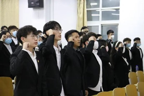 学生组织全体人员共同宣誓:恪守学生本分,牢记服务宗旨。永葆理想情怀,勤勉务实做事。营造平等气氛,摒弃庸俗习气。