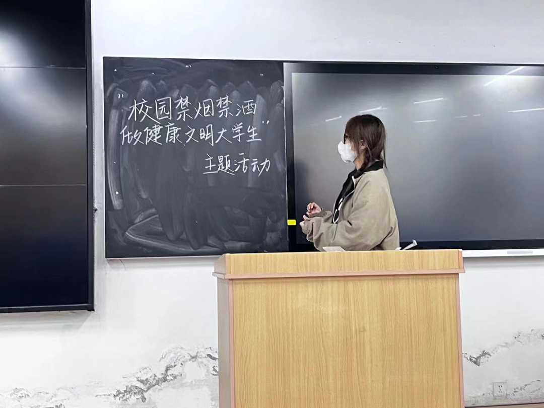 为营造良好的校园公共卫生环境,保障全校师生的身体健康。各级团支部组织开展“校园禁烟禁酒,做健康文明大学生”主题活动。让我们行动起来,拒绝香烟,让宿舍不再乌烟瘴气,让烟蒂在校园里销声匿迹;拒绝酗酒,让酒后闹事远离我们的校园。