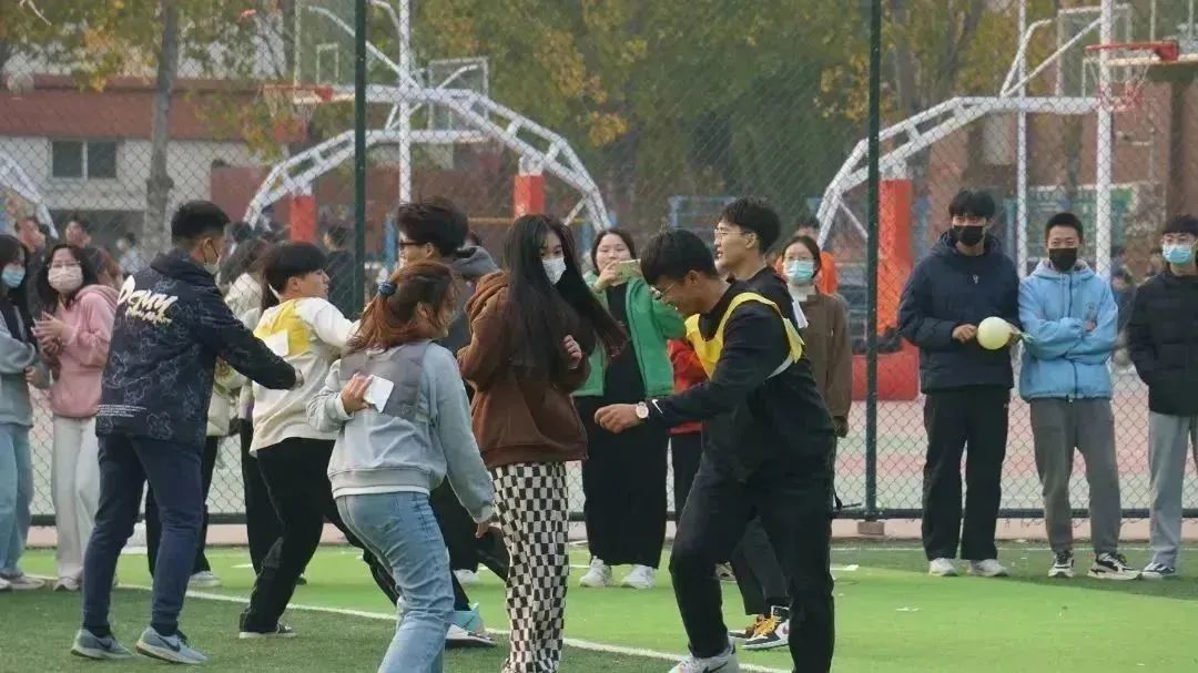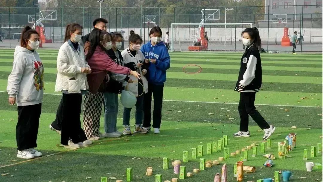 所有同学跃跃欲试,参与热情高涨。两人三足,同学们相互信任,相互协作,团结奋力向前冲;拔河游戏,场上参赛者竭尽全力,场下观众加油助威,同学们凝心聚力,为自己的集体而拼搏;撕名牌比赛,同学们热血无畏,齐心协力,为团队争光;套圈,按照游戏积分的多少,同学们通过套圈获得奖品,这是属于热血青年们的胜利勋章;夹气球折返跑、踩气球,这是对同学们耐力和协调力的双重考验,操场上空飘扬着同学们的欢声笑语。