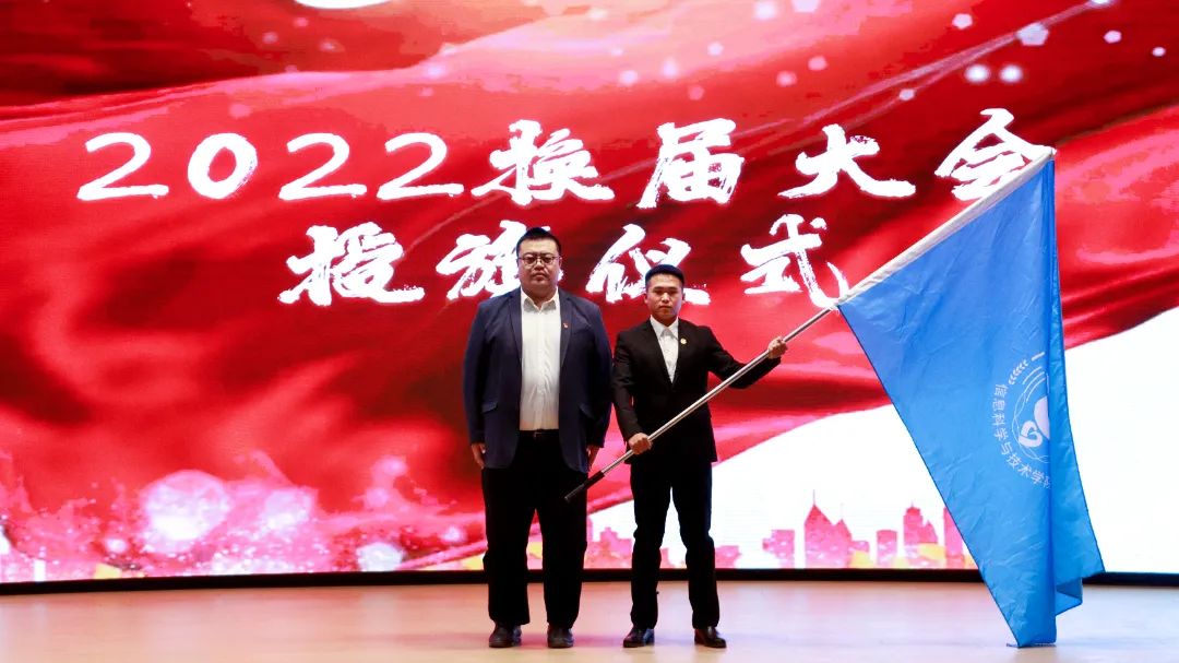 接下来,进入庄严的授旗仪式。朱雷书记将代表传承与信念的信息科学与技术学院组织旗帜授予学生组织代表张佳璇,张佳璇挥舞旗帜,现场掌声不绝,传承的旗帜飘洋在主席台上,预示着组织蓬勃昂扬的光明未来。授旗仪式接过的是前辈们辉煌的工作成就,更是新一代组织干部们接续奋战、昂扬奋斗誓言。