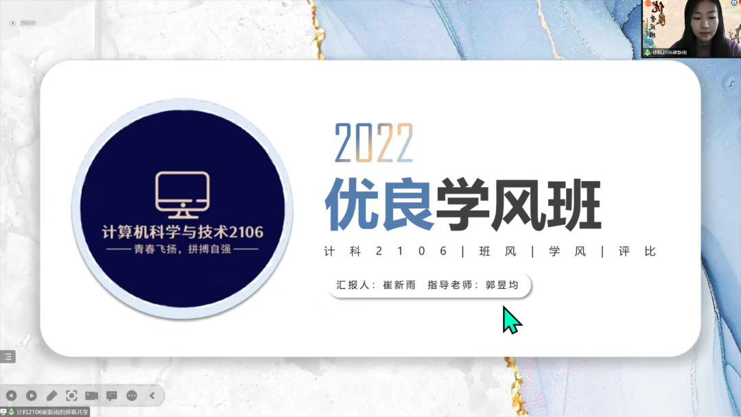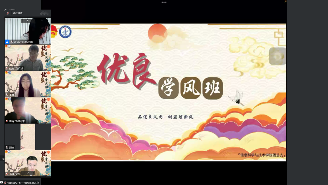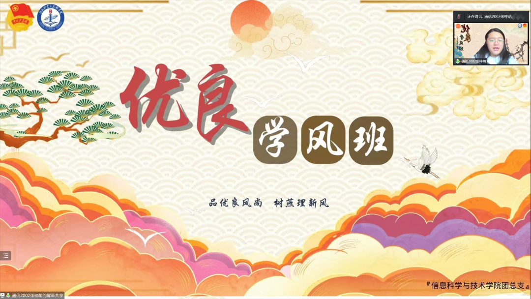 为进一步促进信息科学与技术学院学风建设,给22级提供一个交流学习平台,增强班级凝聚力,促进各班班风建设,进一步使同学们正确处理好自己的时间,安排好自己的生活,达到来大学深造的目的,12月7日上午,信息科学与技术学院于线上举办了以“品优良风尚,树燕理新风”为主题的优良学风班评比展示活动。