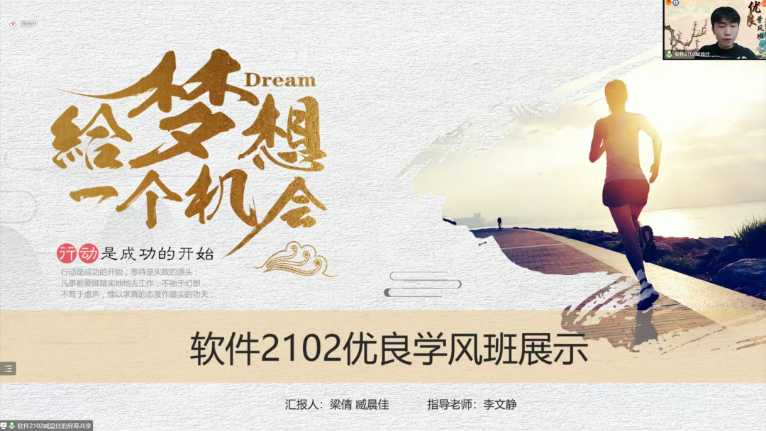 此次活动由20级和21级的部分班级参加评比,各班在展示环节通过ppt从班委成员介绍、班级活动建设、班级荣誉、思想建设、学风建设、班风建设、第二课堂这七个方面展开介绍,突出了各班在班风学风建设中的积极影响,显示了积极向上的班风和勤奋踏实的学风。