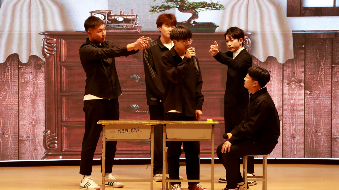 接着,通信2202班和计科2206班翻拍红色影片,以朗诵的形式展现爱国主题,分别带来节目《亮剑—英雄》和《建国大业》,激发同学们的爱国热情。《来电》、《反诈银行》防诈骗主题小品,提醒同学们提高防范诈骗意识。计科2203班和计科2202班同学表演投入认真,小品诙谐幽默,引人入胜,深深警醒着同学们。