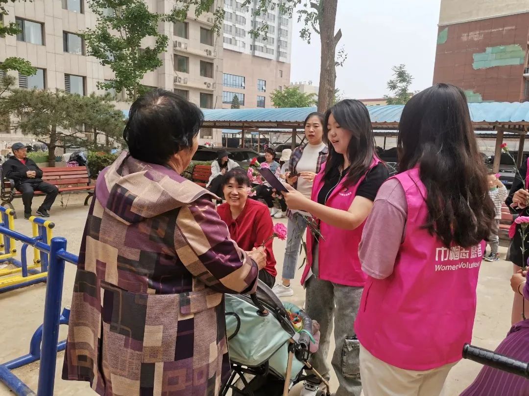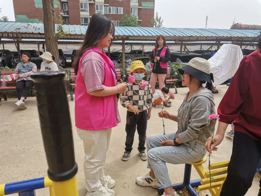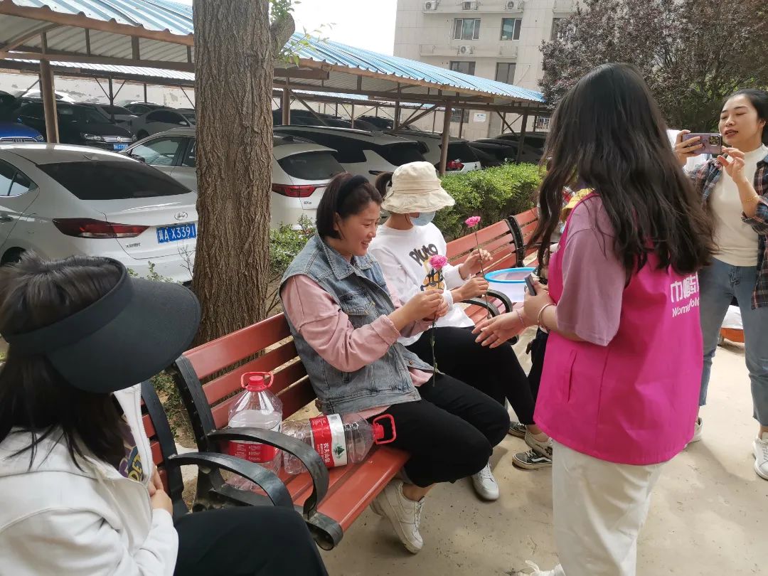 在母亲节这天,志愿者们身穿马甲走在大街上,走向每一位母亲们,送去花香扑鼻的康乃馨和天下儿女对母亲的感恩。在广场上给广大女同胞赠送康乃馨并送上节日祝福,却见她们又将花送给自己身边的孩子,完成爱的传递。整个活动气氛融洽且轻松,虽然辛苦了一上午,但是望着大家收到花时,洋溢在脸上的笑容,所有的阴霾烟消云散。同时,也希望大家都能从工作和学习中抽出片刻时间,打一通电话将封尘已久的心里话和节日祝福送给自己母亲。