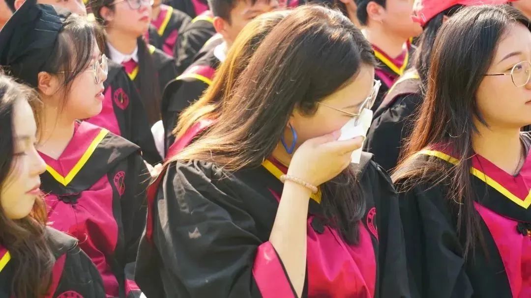 山有顶峰,湖有彼岸。登高伤远别,鸿雁几行飞。话别今天,执手已凝语,冰心在玉壶。踏上红毯,在泛红的眼眶中透出的尽是不舍的情愫,镜头捕捉到的,是毕业学子们的“一举凌鸿鹄”的底气!同时,祝愿毕业学子们来时方长暂做别,循光而往踏歌行。