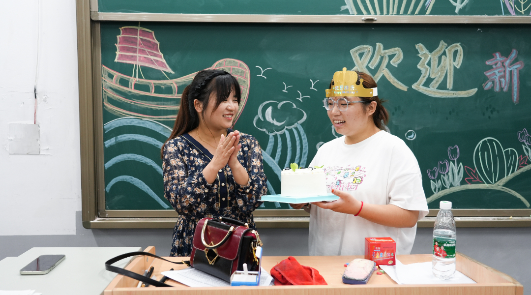 新生第一课结束后,辅导员万露老师和张志敏老师班级为过生日的同学送上真挚的生日祝福,大家齐唱生日歌,分享生日蛋糕,分享喜悦,也祝福大家学业有成,鹏程万里。