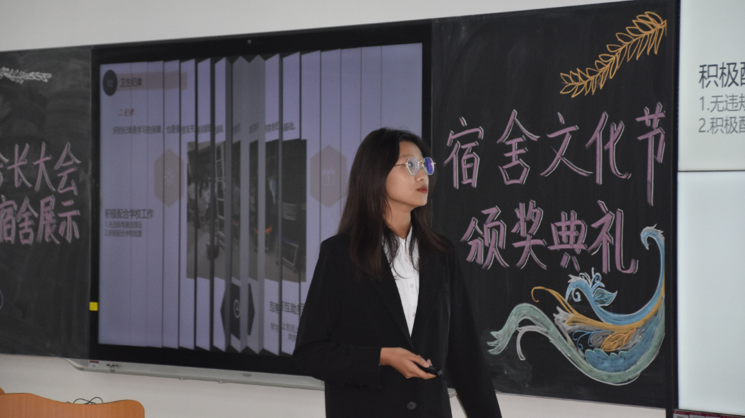颁奖结束后,老师代表发言表示:颁奖典礼是对获奖宿舍的肯定、鼓励和赞扬,本次颁奖典礼也对其他宿舍起到了榜样作用,是对大学生能在宿舍生活中积极表现和用心创造和能保持环境与团结和谐的氛围的高度赞扬。这次活动也为其他宿舍提供了学习目标与方向,创造属于你们宿舍自己的风采与文化。用独特的宿舍文化和美好的友情描写激情澎湃的大学时光。