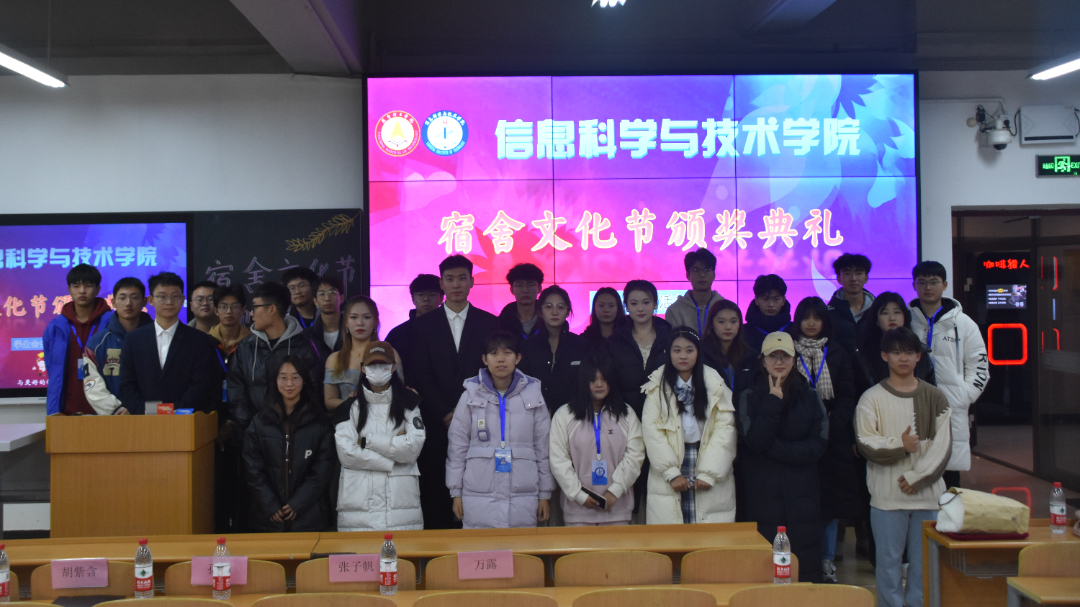为了展现每个宿舍独特的宿舍文化,增强同学们在宿舍的生活质量和和睦的环境,丰富学生们的课余生活并增进感情,信息科学与技术学院于11月24日在综合楼101开展了宿舍文化节颁奖典礼。此次活动统一了宿舍的日常布置及宿舍标准,充分调动了同学们的积极性,信息科学与技术学院的孙昊老师,万露老师,张志敏老师,张子帆老师,胡紫含老师和学生代表出席了这次活动。