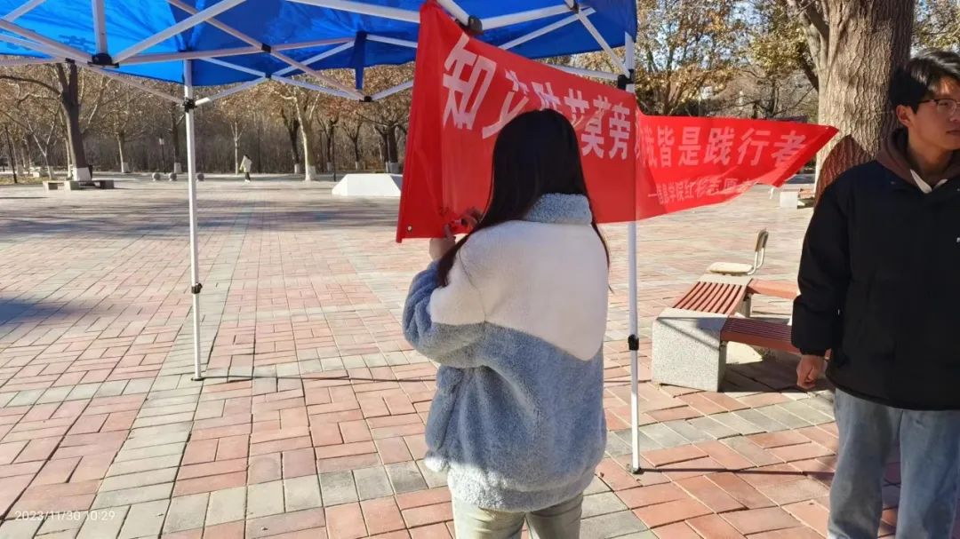 如今, 艾滋病已成为严重威胁人类健康的公共卫生问题之一。为了让同学们进一步对艾滋病有一个正确的认识,关心关爱艾滋病病毒感染者,消除同学们对艾滋病患者的歧视与偏见。燕京理工学院信息科学与技术学院红衫志愿者协会于2023年11月30日-12月1日在B楼党建广场前开展“为艾加点爱”活动。