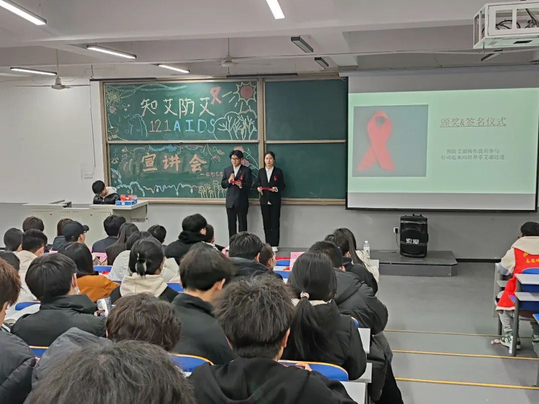 12月1号晚上,红衫志愿者协会在A301组织开展知艾防艾宣讲会,进行艾滋病知识有奖竞答 ,同学们积极参与此次讲座进一步让大家了解关于艾滋病的知识,提高了同学们对艾滋病危害的认识。