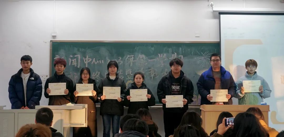 随后,赵晨宇主任和刘新琦主任为获得优秀干事,优秀摄影师,优秀记者,优秀新媒体运营者的干事颁发奖状。并对获奖者表示热烈祝贺,希望他们能够继续发挥优秀品质,鼓励其他新闻工作者向获奖者学习,不断提高自身素质和能力,为新闻中心的发展贡献力量。