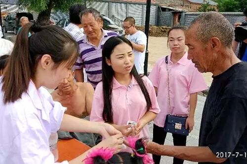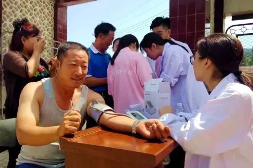 “燕京理工学院的大学生给咱们免费拍照片了,免费测血糖,量血压,没事了赶快过来吧。”实践期间,王家湾乡的周边村子的村委喇叭里不时的会传出实践团开展活动的内容公告。实践活动的顺利开展得到了王家湾乡政府的大力支持,实践团队员们在乡政府门口建立起临时的小型医疗站,为当地村民免费测血糖,量血压,讲解健康知识。