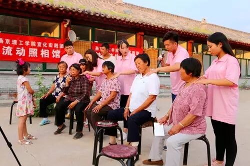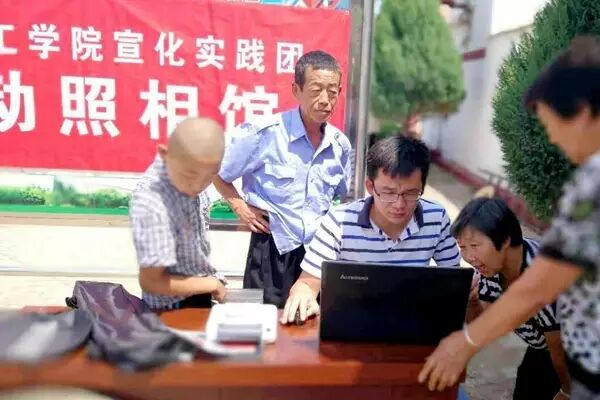“王家湾乡谢家湾村在这一年扶贫工作中取得很大的进展,跟你们去年来得时候比有个大改变:村里盖起了牌楼,水泥道路变宽了,建立了桑干河文化广场,有三分之一的危房按照‘美丽乡村’标准改造为美丽院落。”在实践活动调研座谈会上,宣化区住建局驻谢家湾村工作队干部耿立功同志自豪的跟队员讲到。 王家湾乡党政办主任谢仁毅还谈到,王家湾乡谢家湾村是河北省美丽乡村建设之一,根据区政府的规划,王家湾乡重点由原来的传统农业向桑干河文化旅游业发展,目前初步开发了桑干河大峡谷等旅游景点,将来还继续打造红色革命教育基地等文化项目。 “移动照相馆”活动是燕京理工学院宣化扶贫实践团今年策划的暑期主题实践活动之一。在前期调研中,实践团了解到王家湾乡没有照相馆,村民要想拍一张证件照或者全家福,需要到距此60公里120多里地的宣化区去,不仅十分不便,此外虽然智能手机能留下影像,但大多数村民还是对冲印出来的相片更有感情,因此实践团决定为村民拍照并且洗印出来赠送给他们。 “我都快十年没有照过相了。”“大学生们真厉害,一眨眼的功夫相片就洗出来了。”“这真是为人民服务啊,不光给我们省100多里路,还是免费的。”王家湾乡乡政府门口,附近村民围在有单反相机、笔记本电脑和快速洗印机的“移动照相馆”前,一边惊奇的见证相片洗印过程,一边欣赏着自己的相片。