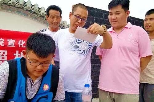 他(王家湾乡老党员老支书王步亭同志)弯着身子在红色的躺柜里翻找着,大约过了三分钟,拿出一沓褶皱的泛着黄的纸,这是他手写的关于宣化王家湾乡的抗战事迹和太阳普照桑干河一书的手稿。书记体贴,怕我们热,就搬了九个马扎让我们坐到门口的大树下。书记有心,有情怀,责任感超强,本着传承历史的初心,利用业余时间整理撰写了太阳普照桑干河一书的手稿,这种服务后代的精神让我们动容和敬佩。——朱键丽 在采访村民时候,我看到一个驼背的老人背着一袋子东西,顺手接了过来,本以为是带有土的袋子是在地里刚回来,我问大爷里面装的是什么,他说是破烂衣服,当时心理很触动,现在的我们穿的衣服是什么?有多少呢?那个袋子很脏,那位大爷还要捡衣服。他们有些人的生活着实艰苦。——马原野 一组组村民享受从未有过的健康养生服务我们给村民按摩,从村民嘴里说出来“可舒服了”,让人有一种无法抗拒的淳朴和感动。他们笑起来眯缝着的眼睛弯成了一道月弧,乡亲们纷纷给竖起了大拇指。——王栋 到达谢家湾村时,团队里去年参加社会实践的两位成员对我们说,去年的时候村口没有大牌坊,村子里都是土胚房,刚刚一看都把我们吓到啦,都不敢认啦……这一年谢家湾村真的是发生了翻天覆地的变化,虽然房屋的改造还没有完成,但是可以看出乡亲们的生活真的发生了变化。——刘婕 村里的孩子闭塞、害羞。当地小孩在上台前由于紧张而哭泣,通过大家的安抚鼓励,勇敢的站上舞台,为爷爷奶奶们表演,看着村里的小孩从胆怯变得勇敢,这才是公益的真正意义。——杨曼 下午我们回到我们居住的谢家湾村,帮助这里的老人干农活,老人都十分感激我们的帮助,而在帮忙中我们才体会到广大劳动人民的艰辛,知道“谁知盘中餐,粒粒皆辛苦”中所蕴含的哲理与思考。——刘正媛