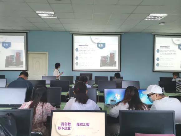 会上,我院8名暑期下企业锻炼的教师依次进行了汇报展示,介绍了此次下企业锻炼的工作环境,实践期间主要从事的工作、挂职锻炼的意义及教学启发等。赵暄老师向各位老师展示了工作环境。邵芬红老师详细的介绍了在企业锻炼从事的主要工作,一是了解企业人才与技术需求;二是学习了解华通科技管理系统开发的整体流程和各项文档资料的内容和格式书写要求;三是参加CMMI高成熟度培训学习,参加企业评审培训。王芳老师也详细的介绍了此次企业锻炼的谊安医疗公司的业务与企业文化、业务版块和生产情况等内容。母俐丽老师在此次企业锻炼期间完成了辅助教学、教学辅导帮助解决学生遇到的问题,收集资料整理教学案例等工作。张书霞老师强调在此次实践中学习了企业的科技管理费用的部分内容,通过实践对课本上不了解的内容有了新的领悟和认识,也切实的了解企业对计算机专业人才培养的实际要求,同时感受到教学内容、方式和方法与企业需求的差距。韩霄萌老师对其实践企业进行了详细的介绍,并分享了自己的感悟,作为应用型高校,满足自身的双师路线,是学校发展的需要和培养目标的要求。