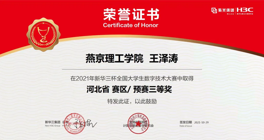 2021新华三杯旗开得胜 | 信息学子斩获河北省赛区特等奖