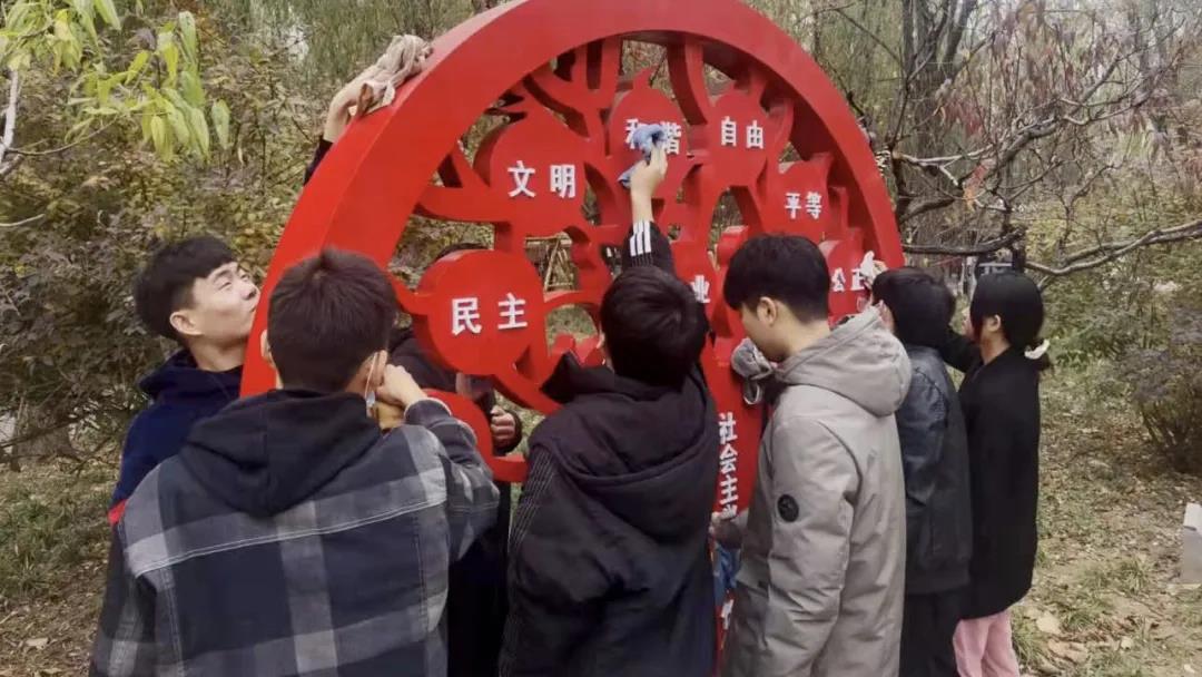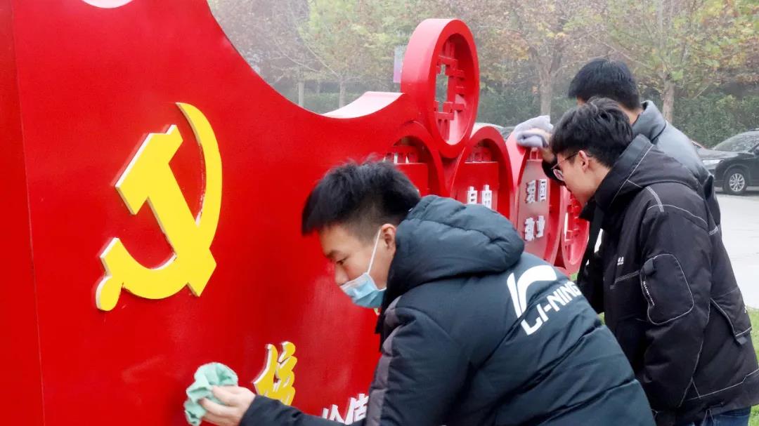 同学们积极参与,活动有序展开,积极分子们分成两队展开打扫,同学们在办公楼后、B楼前党建广场等地积极开展擦党建牌活动,将清扫“党建雕塑”落到实处。此次活动,使同学们更好的学党史、悟思想,不断增强他们的向心力、凝聚力和战斗力,培养他们实事求是的态度,真抓实干的行动和甘于奉献的精神。