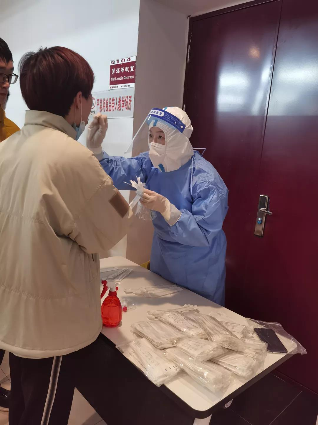 在学院号召下,各部门积极响应,入党积极分子与发展对象加入到志愿服务队伍当中以志愿者身份化身“红衣天使”,维护核酸现场的秩序并进行引导工作。