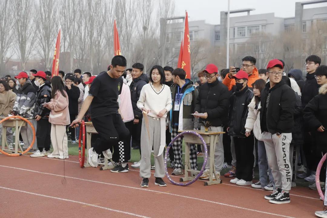 在学校体育运动委员会的宣传动员下,全校师生踊跃报名,充分激发了运动热情。长跑以“男女混合接力跑+答题”比赛的形式进行,每队男女各6人,每单数棒队员接力前,需抽取并正确回答党史学习教育或2022冬奥会有关的3道问题,每双数棒队员接力前需在踢毽子、转呼啦圈和跳绳中抽取一项并完成12个数量任务,方可继续比赛,最后一名选手跑完全程即比赛结束。