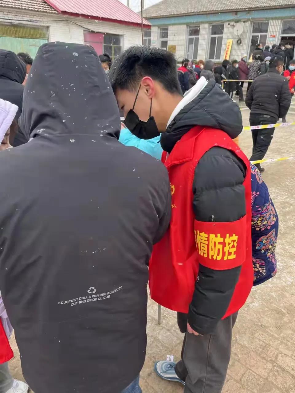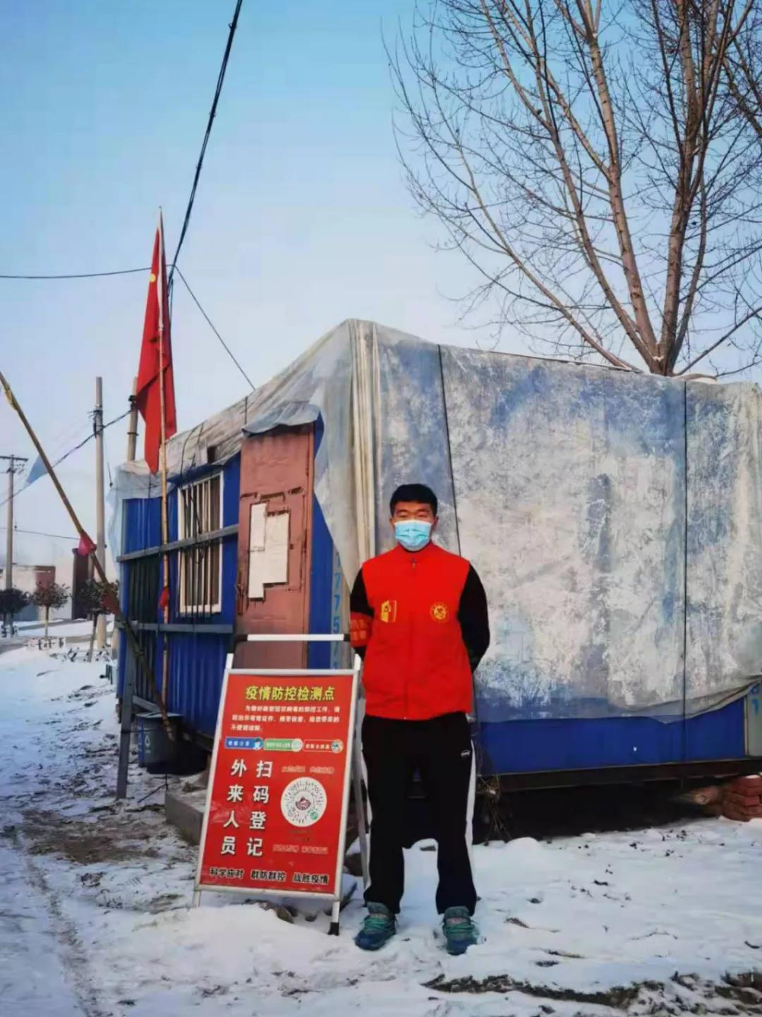 物网2001班林天齐,河北廊坊人,在寒假期间积极响应当地号召,参与了疫情防控志愿活动。在此期间我的主要工作是协助工作人员在村口组织好居民扫描健康码、行程卡确认其是否去往过中高风险地区,并针对此次疫情进行全民核酸。疫情防控是对我们国家治理体系和治理能力的一次实战检验。在上级领导和组织的带领下,我们积极执行好防控措施。为疫情防控奉献自己的一份力量。