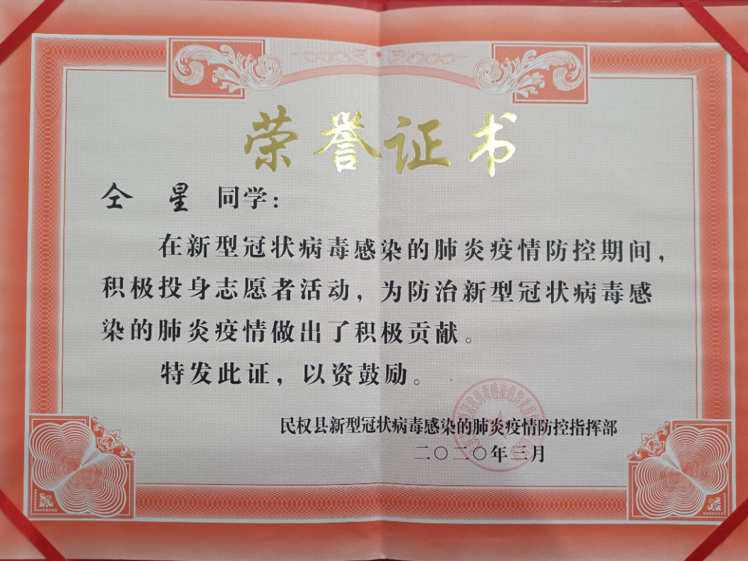 2020年寒假期间,我就曾参加了大学生防控志愿者,所以对于相关工作也有一些了解,在了解相关政策后,我第一时间返回家乡参与大学生志愿服务,工作期间主要负责返乡人员信息登记、隔离人员健康监测以及协助核酸检测等工作。