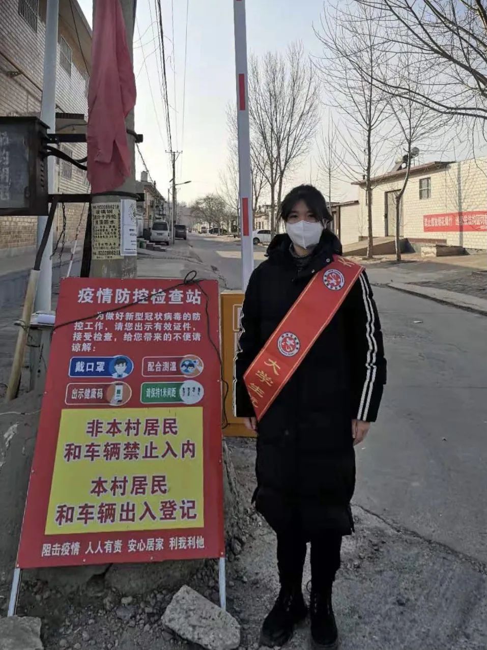 我是来自信息科学与技术学院计科2110班的兰佳钰。在疫情爆发之际,各村设立了村里疫情卡点处,我主动申请去当志愿者,为村里的疫情防疫工作做出贡献。每天到村里疫情卡点处去执勤,对过往人员测量体温并登记,对过往车辆进行消毒、登记,并对外来人员进行劝返。积极帮助村干部宣传防控知识,告知村民有关疫情的真实消息,提高村民对于疫情的认识,不造谣,不传谣,倡导村民少出门、戴口罩、勤洗手、不聚众,科学防控,对防疫工作提出自己的想法。