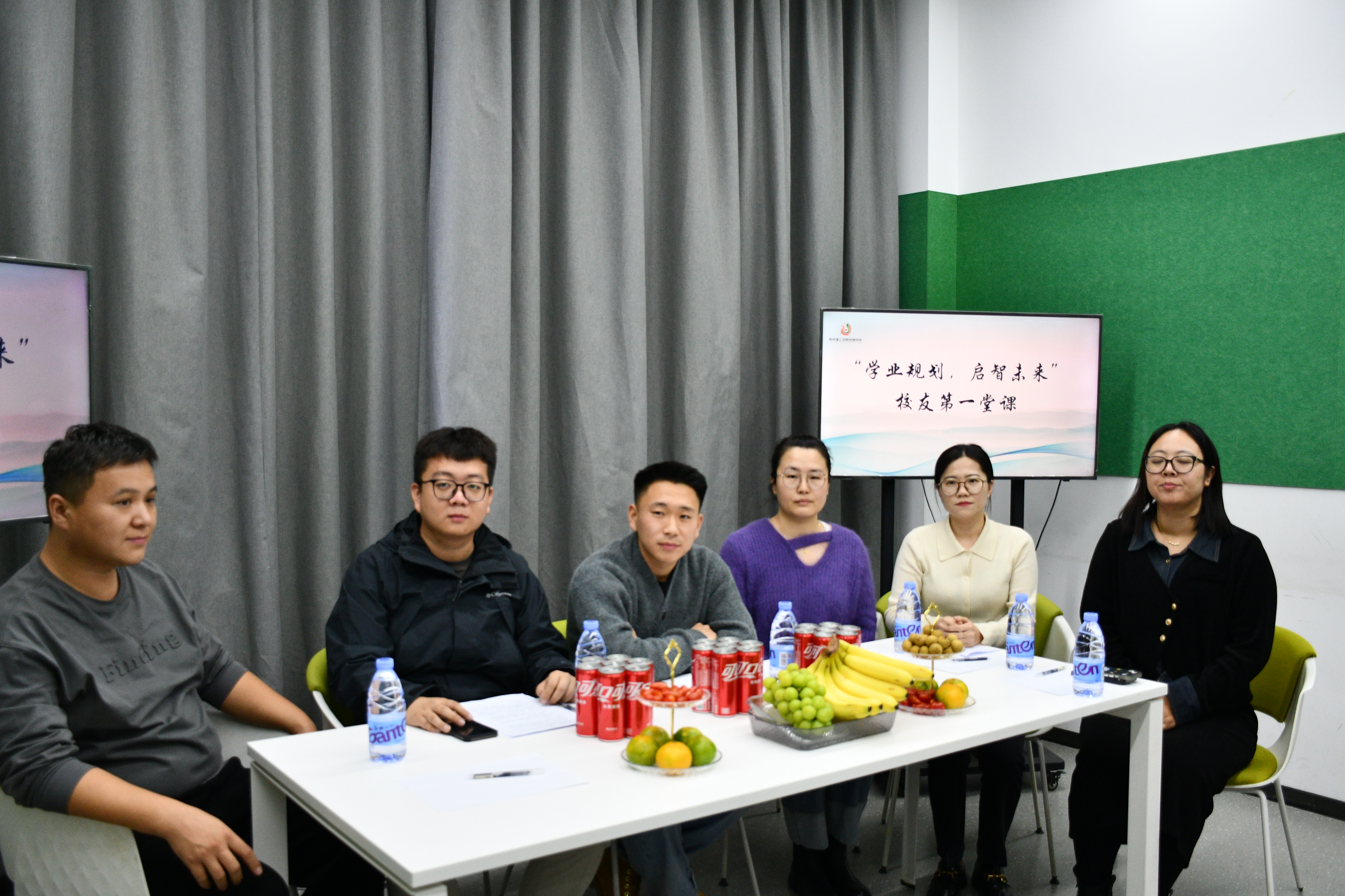 10月24日晚19:00,传媒学院在F507举办“校友第一堂课”活动。参加本次活动的老师有燕京理工学院传媒学院团总支指导老师张丹璐老师、辅导员代表王鸿帅老师、毛志香老师、燕京理工学院传媒学院学生会指导老师孙玉洁老师,以及202届毕业校友尤青松,2022届毕业校友郭炳灼,现就职于河北东方学院人工智能学院。