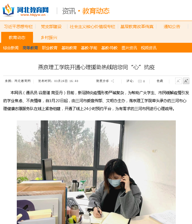 【河北教育网】燕京理工学院开通心理援助热线陪您同“心”抗疫