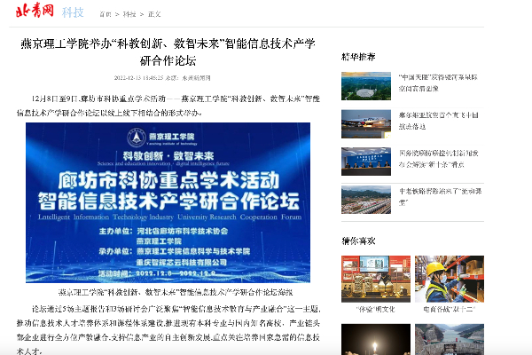 【北青网】燕京理工学院举办“科教创新、数智未来”智能信息技术产学研合作论坛