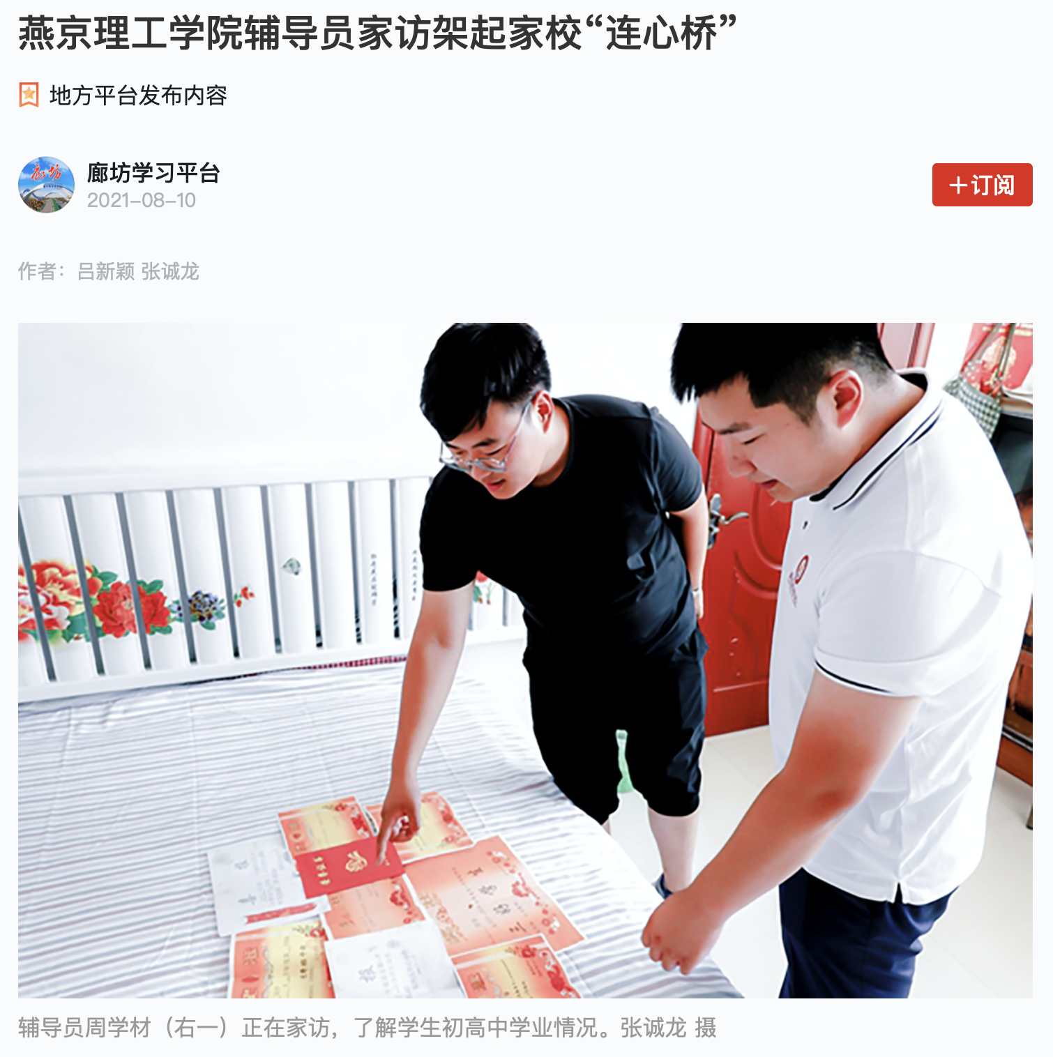 【学习强国】燕京理工学院辅导员家访架起家校“连心桥”