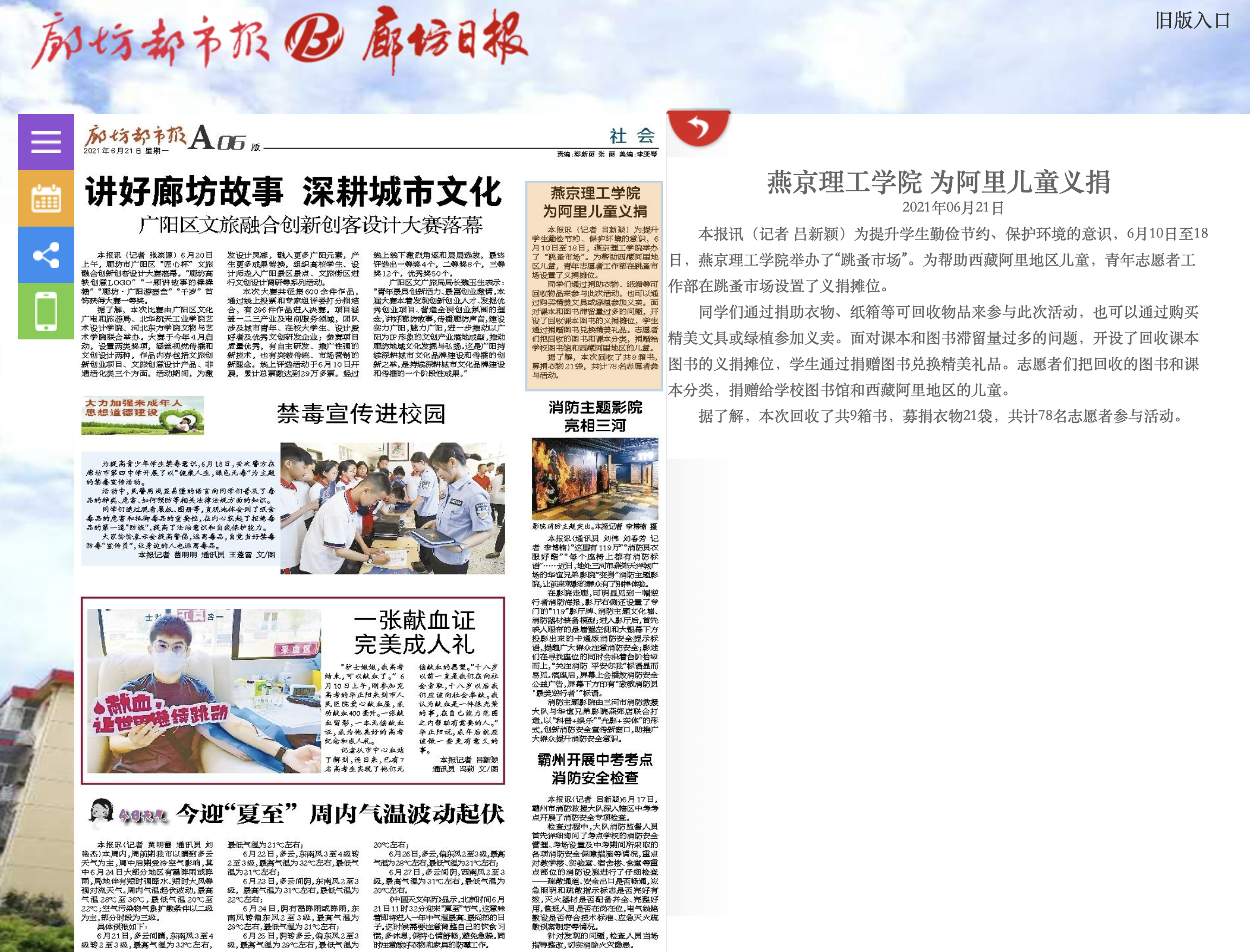 【廊坊都市报】燕京理工学院 为阿里儿童义捐