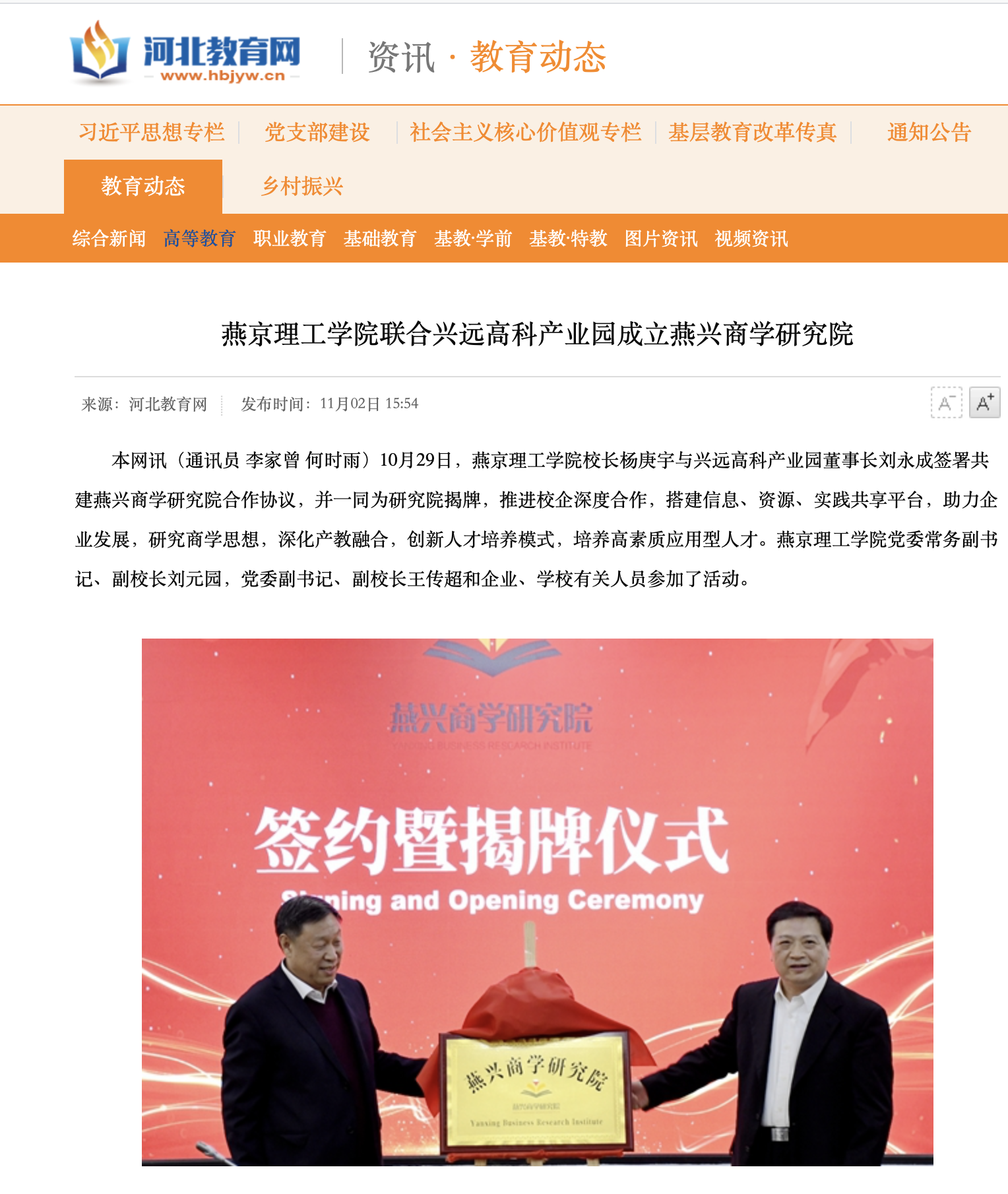 【河北教育网】燕京理工学院联合兴远高科产业园成立燕兴商学研究院