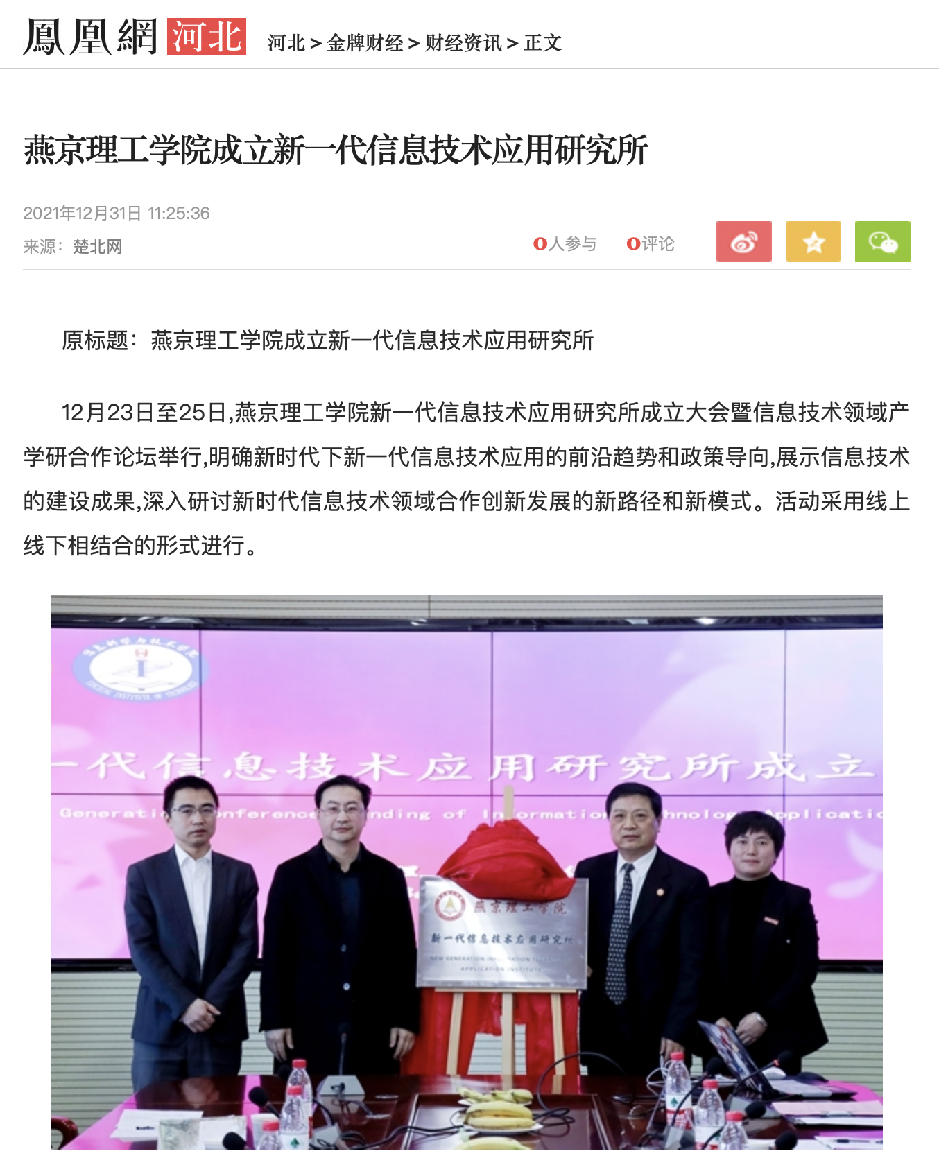 【凤凰网】燕京理工学院成立新一代信息技术应用研究所
