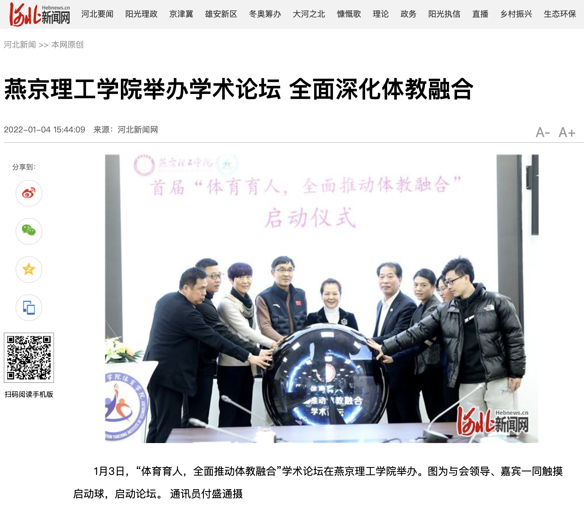 河北新闻网讯(通讯员李家曾 河北日报记者周禹佳)2022年1月3日,“体育育人,全面推动体教融合”学术论坛在燕京理工学院举办。论坛研究探索新时期体育教育的本质、价值、发展规律,以及新时代高校如何落实体教融合的路径与方法。
