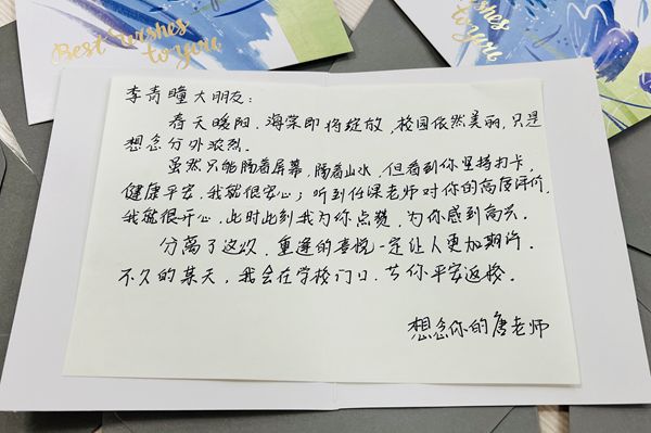 “以书信的方式,为我可爱的学生们准备了一份特殊的礼物,点赞他们这段特殊时期的坚持,同时督促大家继续努力。”唐思如老师这样说。