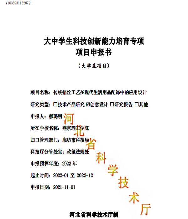 喜报 | 艺术学院成功申报2022年度河北省大中学生科技创新能力培育专项项目