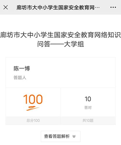 工学院线上云发力,开展多形式宣传教育活动,依托钉钉平台组织开展线上讨论、主题“云”团日等活动,普及《国家安全法》等安全知识。除此之外,积极组织师生参加国家安全知识在线问答,参加人数实现全覆盖。