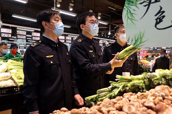 王进在超市检查产品质量