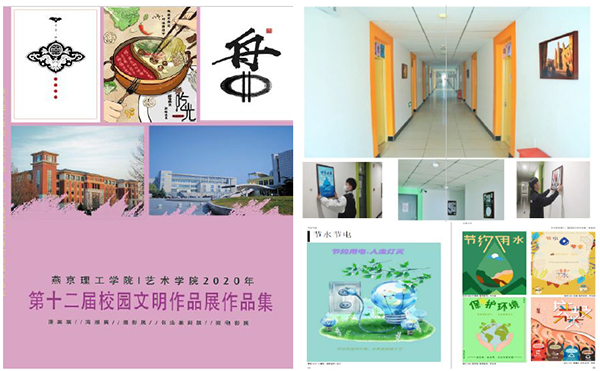 将党建工作与日常主题育人相结合,开启好育人新格局。先后举办“艺心向党 礼赞百年”主题艺术作品展,师生赴红色主题教育实践基地研学等丰富多彩的党团活动。学院连续举办12届校园文明作品展以防疫海报、光盘行动、保护环境、校园文明、节水节电等主题,通过海报、漫画、摄影、音视频进行文明倡导,累计逾1000幅作品在学生宿舍廊道、餐厅、图书馆等公共区域陈列,丰富校园文化,引领和谐文明校园建设。