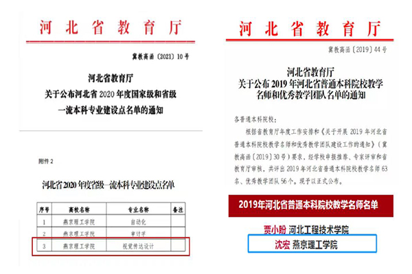 发挥党组织在学院建设与改革发展中的政治引领作用,强化学科内涵建设。学院结合国家战略、行业发展和社会发展趋势,多次新增专业和方向的调整,结合国家战略、行业发展和社会发展趋势,以满足市场人才发展需求,产品设计专业、视觉传达设计专业分别荣获河北省2020年和2021年一流本科专业,产品设计专业2021年软科排名全国第98名、河北省产品设计专业高校并列第1名,学院现1个硕士建设点,2个特色专业。