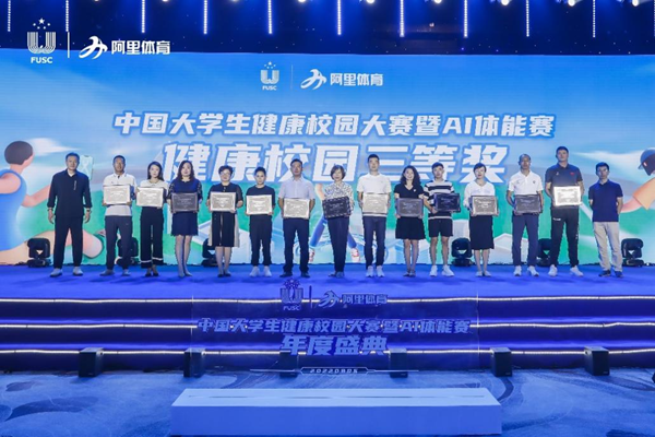 本网讯(体育学院 王坤)8月6日,由中国大学生体育协会主办、橙狮体育协办的中国大学生健康校园大赛暨AI体能赛颁奖盛典在重庆举办。我校15000余学生学生积极践行“在燕理,体育无处不在”的体育运动理念,踊跃报名参赛。经过历时3个月的赛事,燕京理工学院获得全国三等奖的好成绩,12名学生获得大赛颁发的奖学金并授予“突出贡献奖”称号。