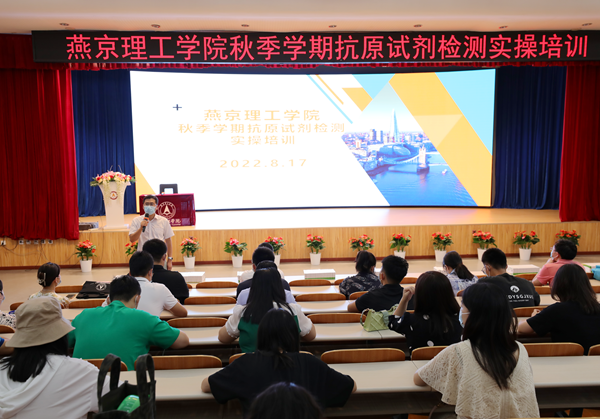 本网讯(学校疫情防控办公室 宣传部 李楠 付盛通)为有效应对当前疫情防控的形势,进一步落实疫情防控要求,提升师生抗原检测能力,8月17日,学校疫情防控办公室组织举办抗原试剂检测实操培训,在校在岗教职工及在校学生代表参加了此次培训会。