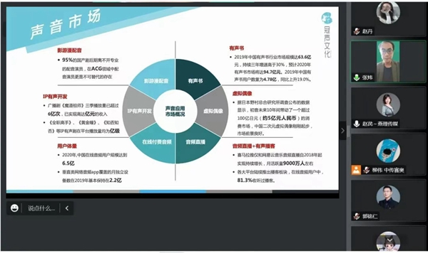 北京冠声文化联合创始人、中国传媒大学传播学博士杜远智作“融媒体音频内容生产与发展趋势”主题报告,围绕中国网络音频行业4.0时代、融媒体音频内容生产与传播、有声行业人才需求、产教融合项目实践等内容进行了分享交流。