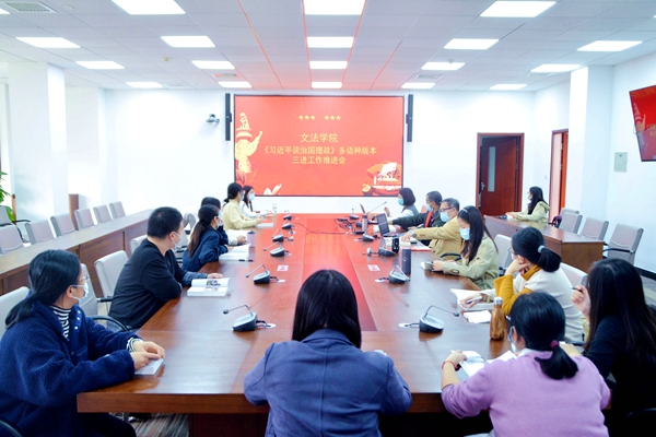 本网讯(文法学院 柳佳琪 楚安琪)11月2日,文法学院于办公楼328会议室举办《习近平谈治国理政》多语种版本“三进”工作专题研讨会。