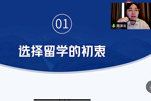 正就读于澳大利亚国立大学的陈泽龙认为留学是以较小的代价和风险来换取一个新的机会与选择。他建议有留学意向的学弟学妹们要早做规划,多与老师沟通,听取意见,及时调整。他还提到,国内外的教育方式略有出入,国外老师更加注重与学生的交流和学生的反馈意见,建议有留学意愿的同学尽早了解和适应国外教育方式。