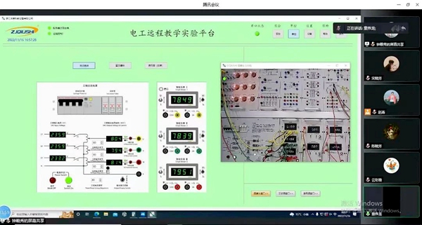 浙江求是科教设备有限公司的郑经理分别从电工系列实验合简介、可完成的实验项目、设备的优势和技术特点为各位老师做了介绍,同时还为大家讲解并演示了公司自行研发的电工远程教学实验平台。
